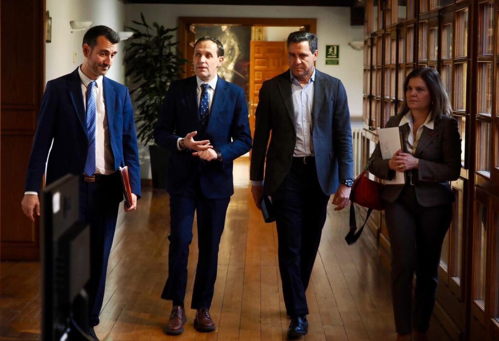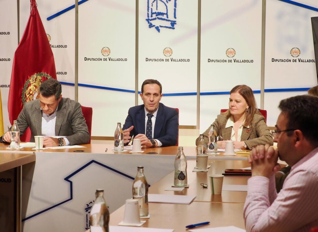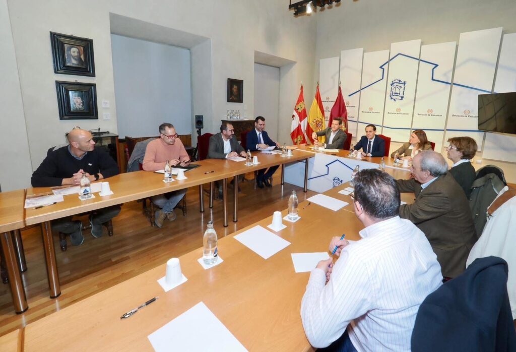El presidente de la Diputación de Valladolid, Conrado Íscar, ha mantenido una reunión de trabajo con los presidentes de los cinco Grupos de Acción Local (GAL) de la provincia, en un encuentro celebrado en el Palacio de Pimentel y en el que han participado también el eurodiputado Raúl de la Hoz y la directora general de Industria y Cadena Agroalimentaria, Cristina Frías.