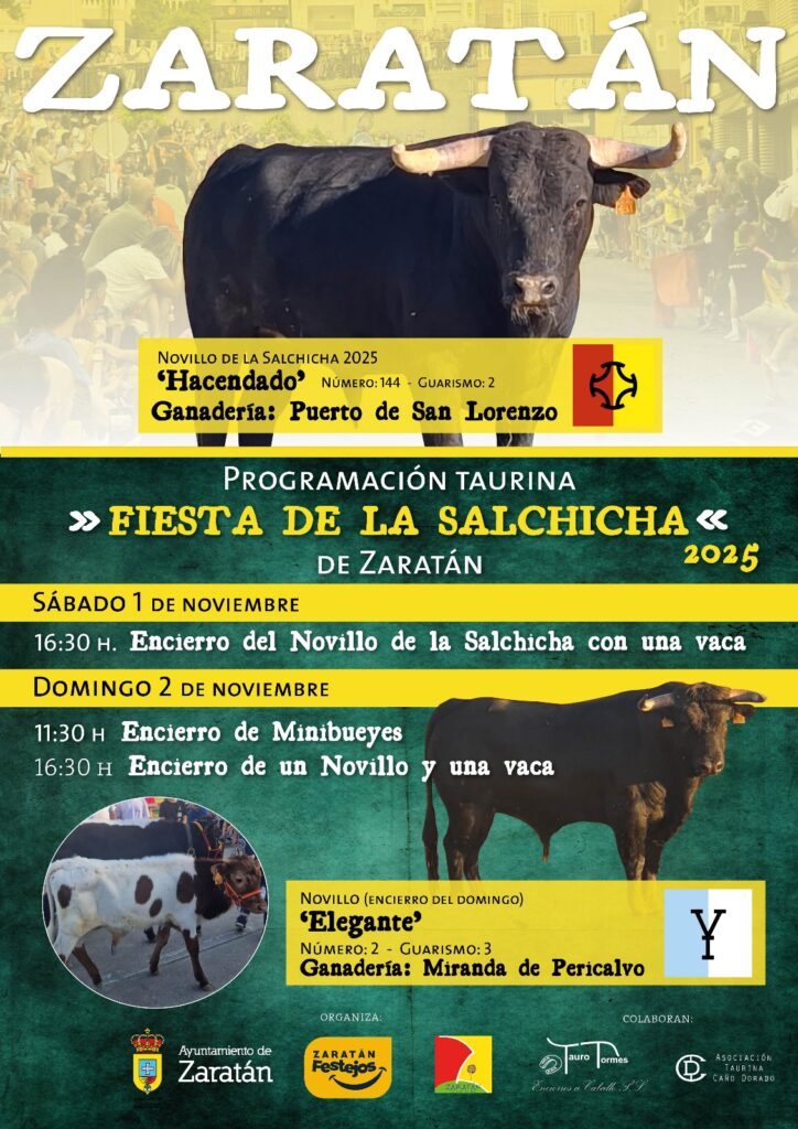 El tic-tac del reloj cada vez suena más cerca y con él se acerca la celebración de uno de los eventos favoritos de los zarataneros, la Fiesta de la Salchicha; un festejo que año a año va ganando más adeptos y creciendo en el ámbito regional. Y es que además de ser una fiesta gastronómica, esta cita también cuenta con los factores cultural y taurino, y en este último el nivel también ha ido en aumento, y en esta edición trae tres festejos taurinos con novillos de ganaderías de renombre que harán las delicias de los aficionados.