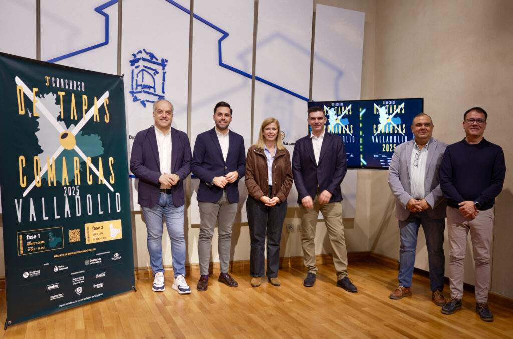 Este viernes se ha presentado, en el Palacio de Pimentel, el tercer Concurso ‘De Tapas por Comarcas Valladolid 2025’, con la presencia del Diputado del Área de Empleo, Desarrollo Económico y Reto Demográfico, Roberto Migallón; el miembro de la Junta Directiva de la Asociación Provincial de Empresarios de Hostelería de Valladolid y chef y propietario del restaurante Ubi la Vega en Arroyo de la Encomienda, Carlos González; y representantes de los patrocinadores del evento.