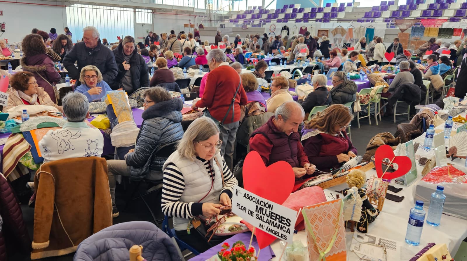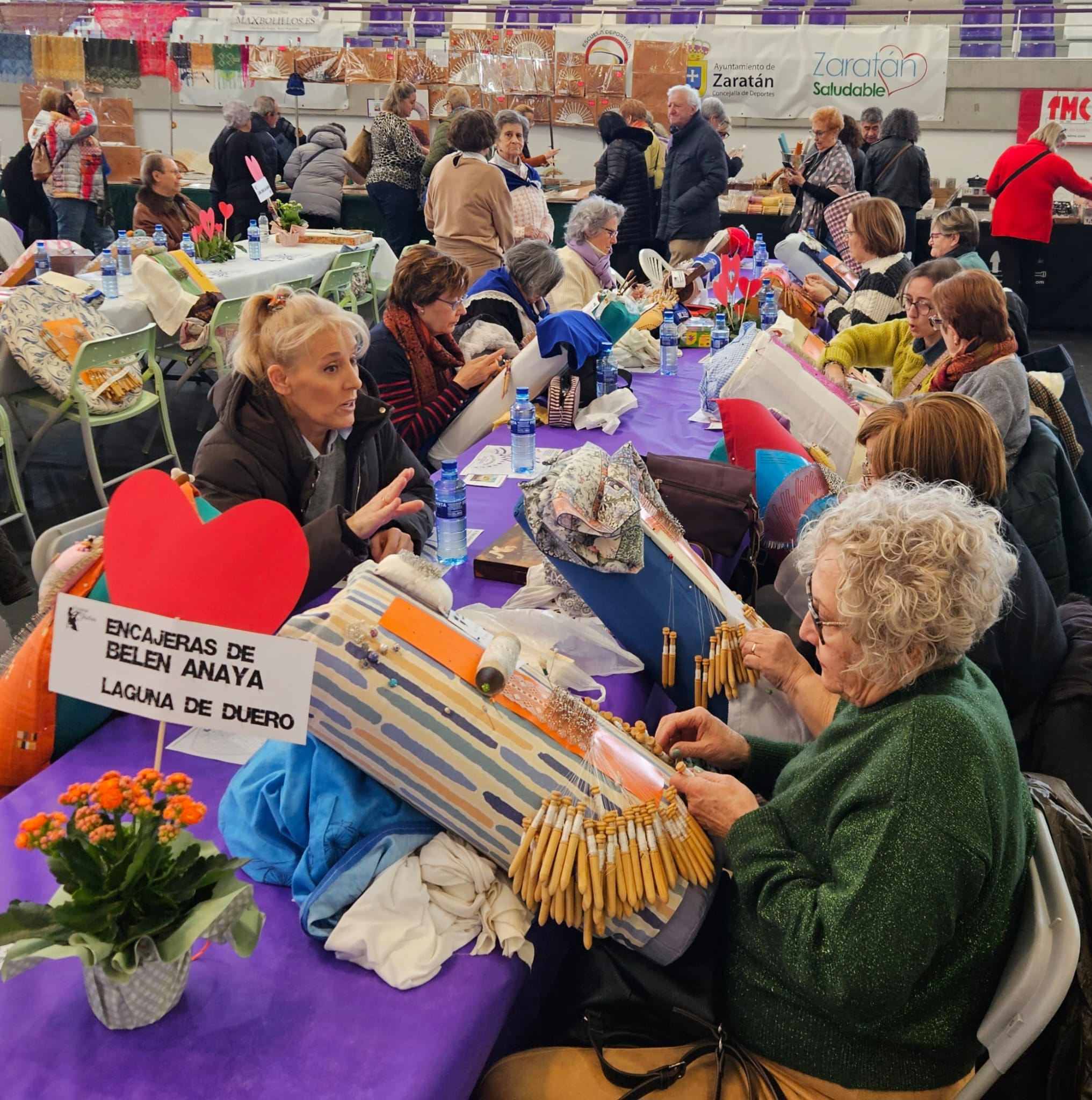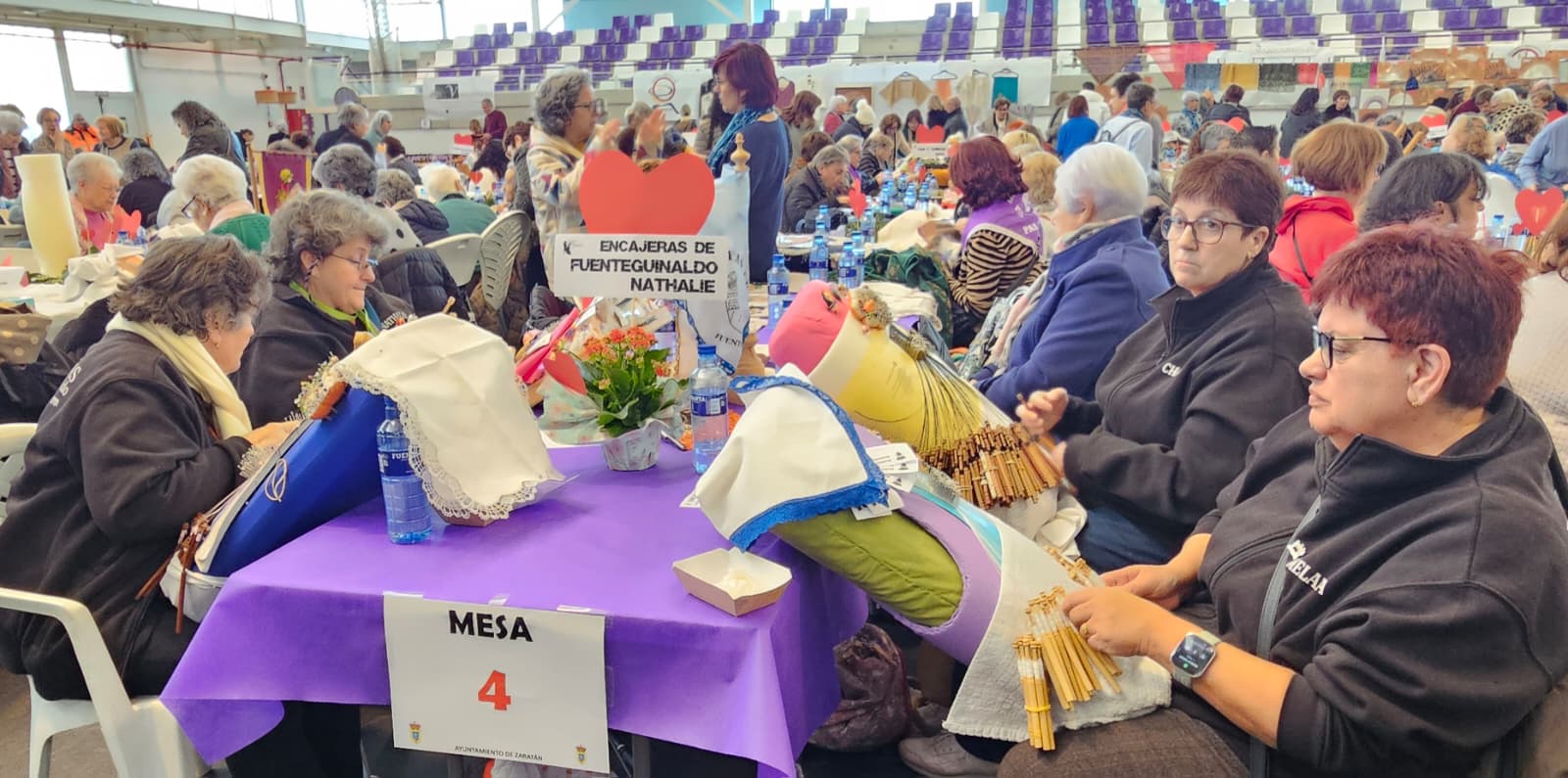 El polideportivo Infanta Juana de Zaratán se ha convertido este sábado, una vez más, en el centro neurálgico del encaje y los bolillos, pues, celebrando el día de los enamorados, y profiriendo sí su amor por este arte y pericia manual, encajeras y bolilleras de toda la geografía española y regional se han acercado una vez más al municipio para participar en el Encuentro de Encajeras que este año cumple su undécima edición.