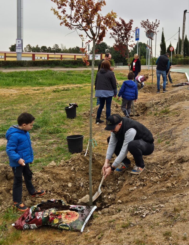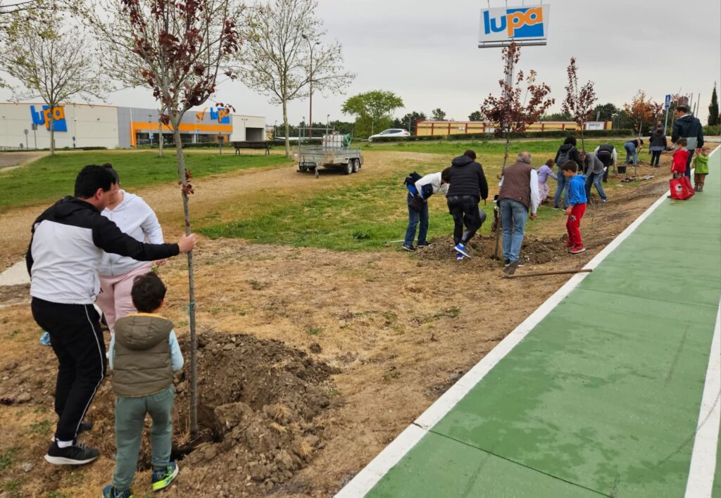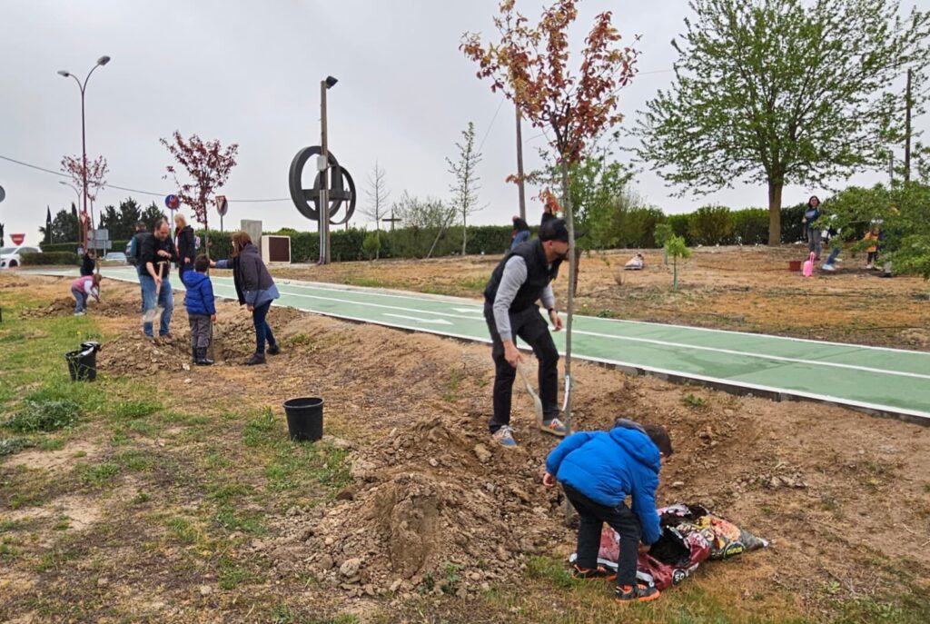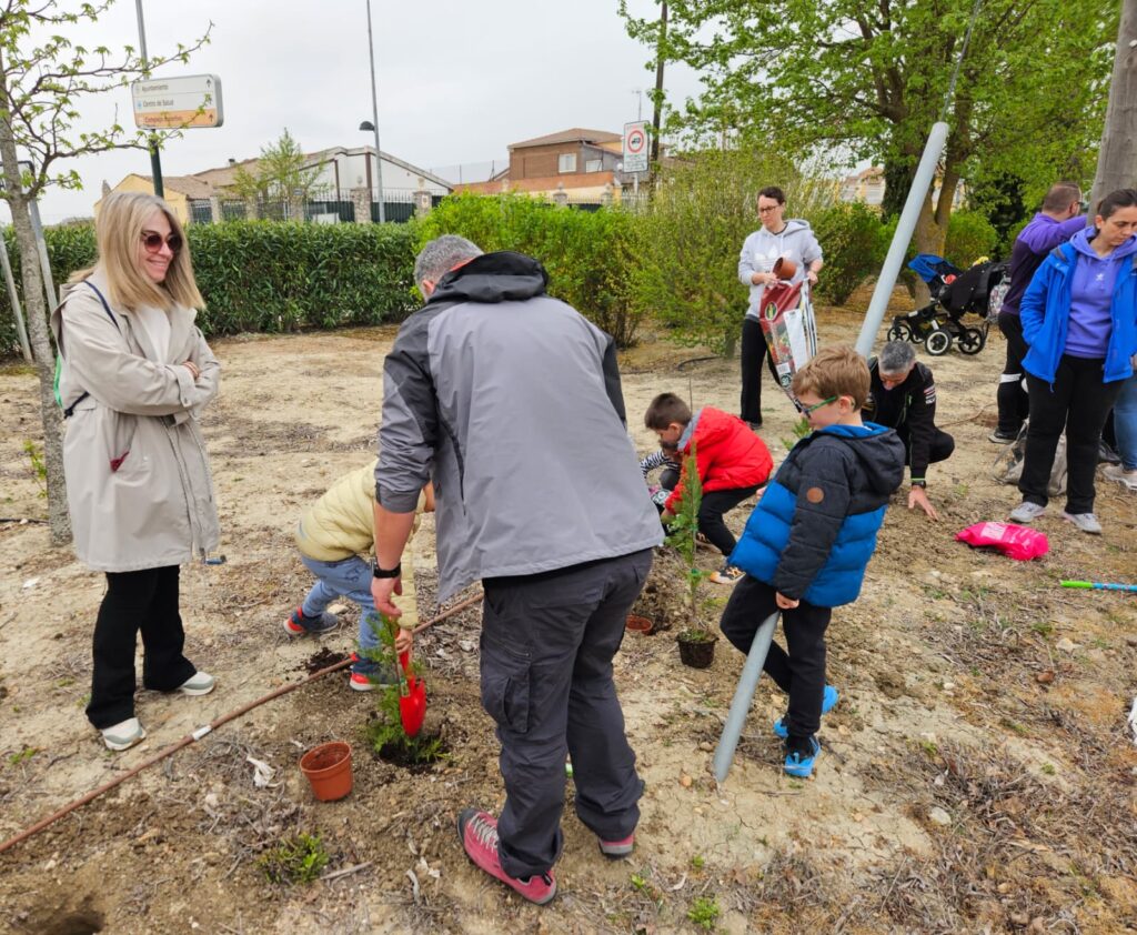 En esta ocasión el lugar de la plantación fue el descampado vecino a la calle Villalar, donde los participantes -33 unidades familiares, y un total de más de un centenar de personas- plantaron seis prunos, dos almendros y veinticinco leylandis. Una vez terminadas las labores de trabajo, los asistentes recibieron, como obsequio, una planta de regalo.